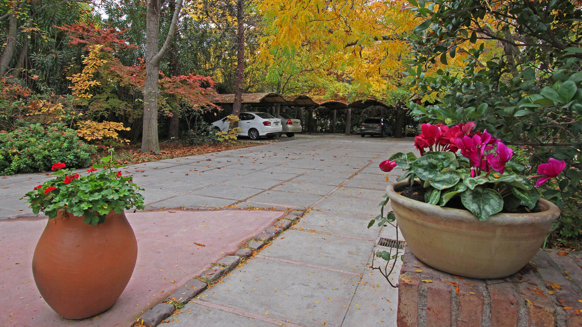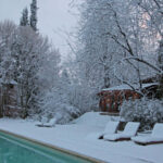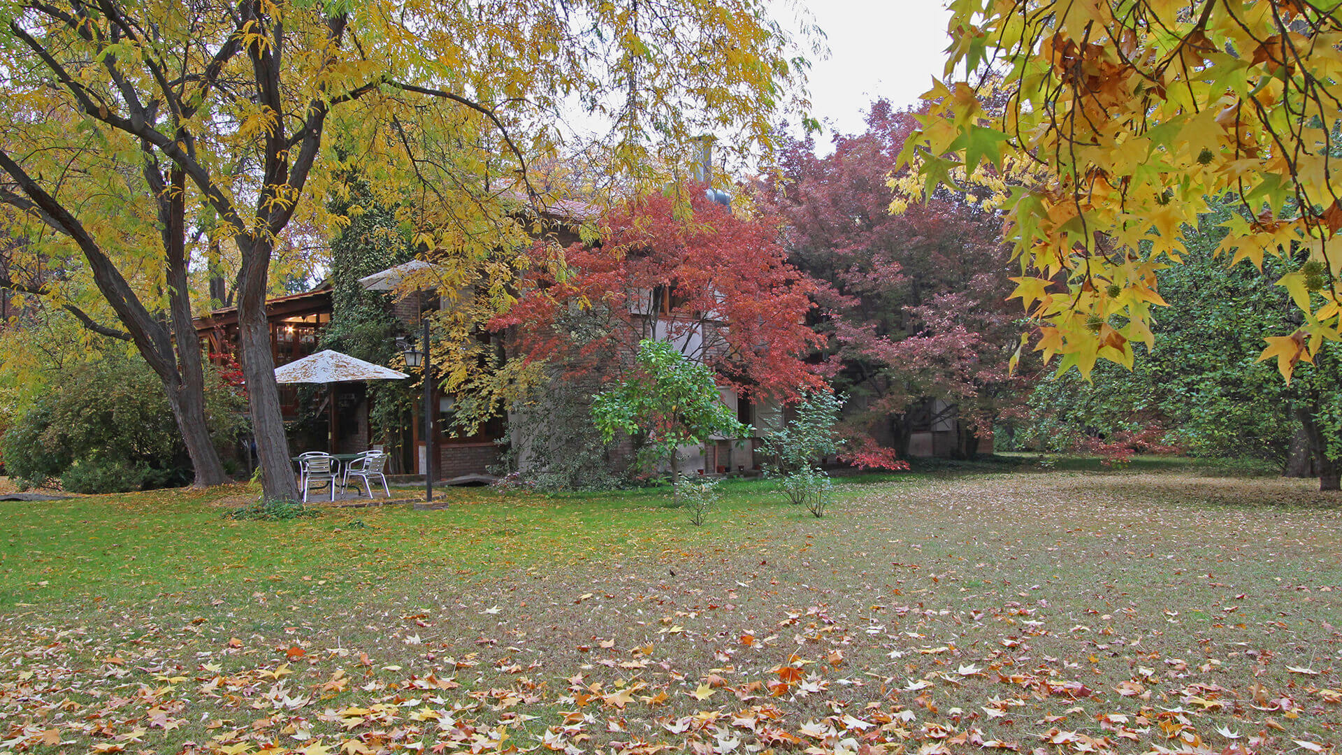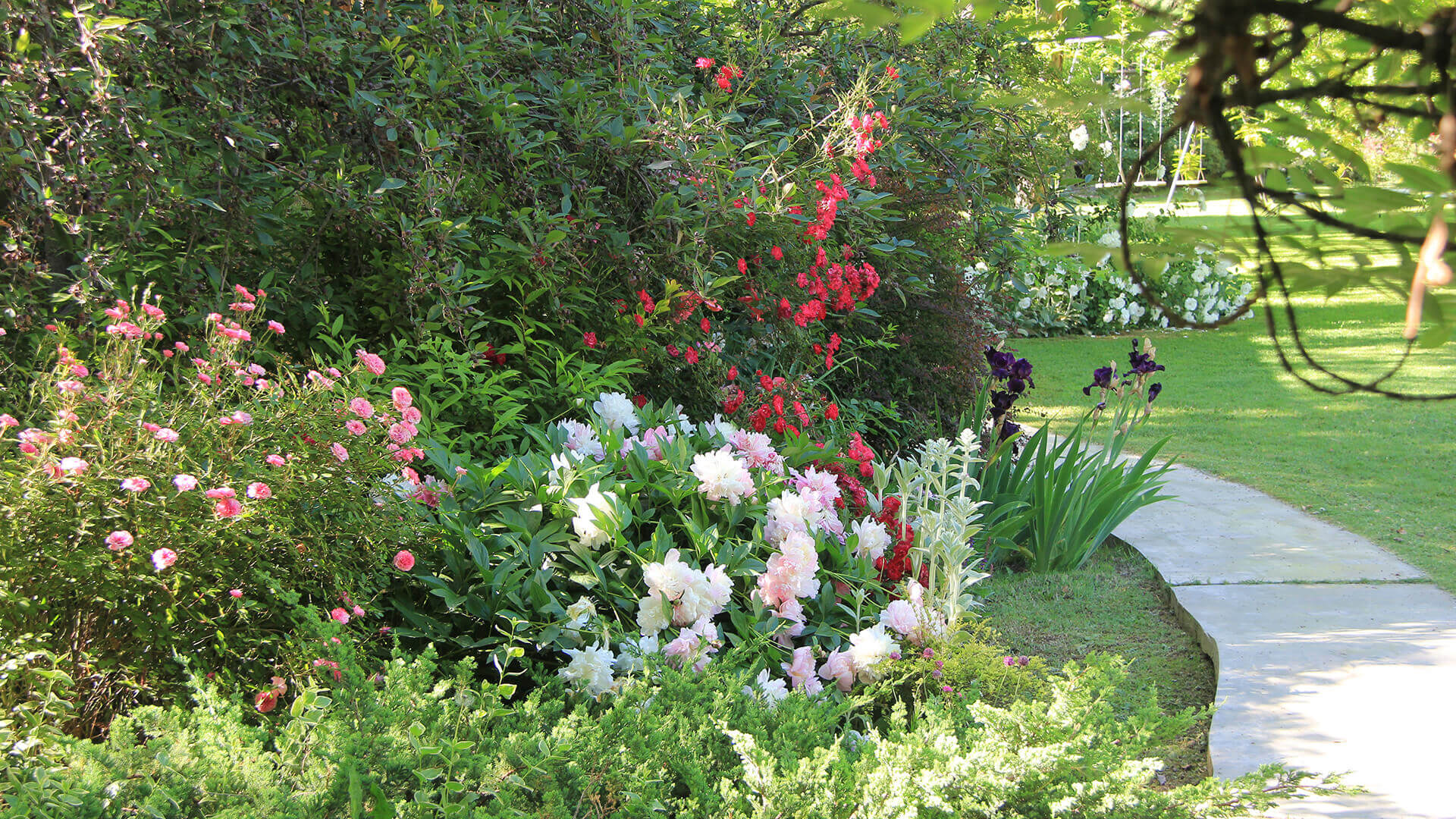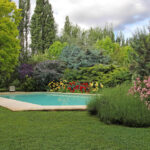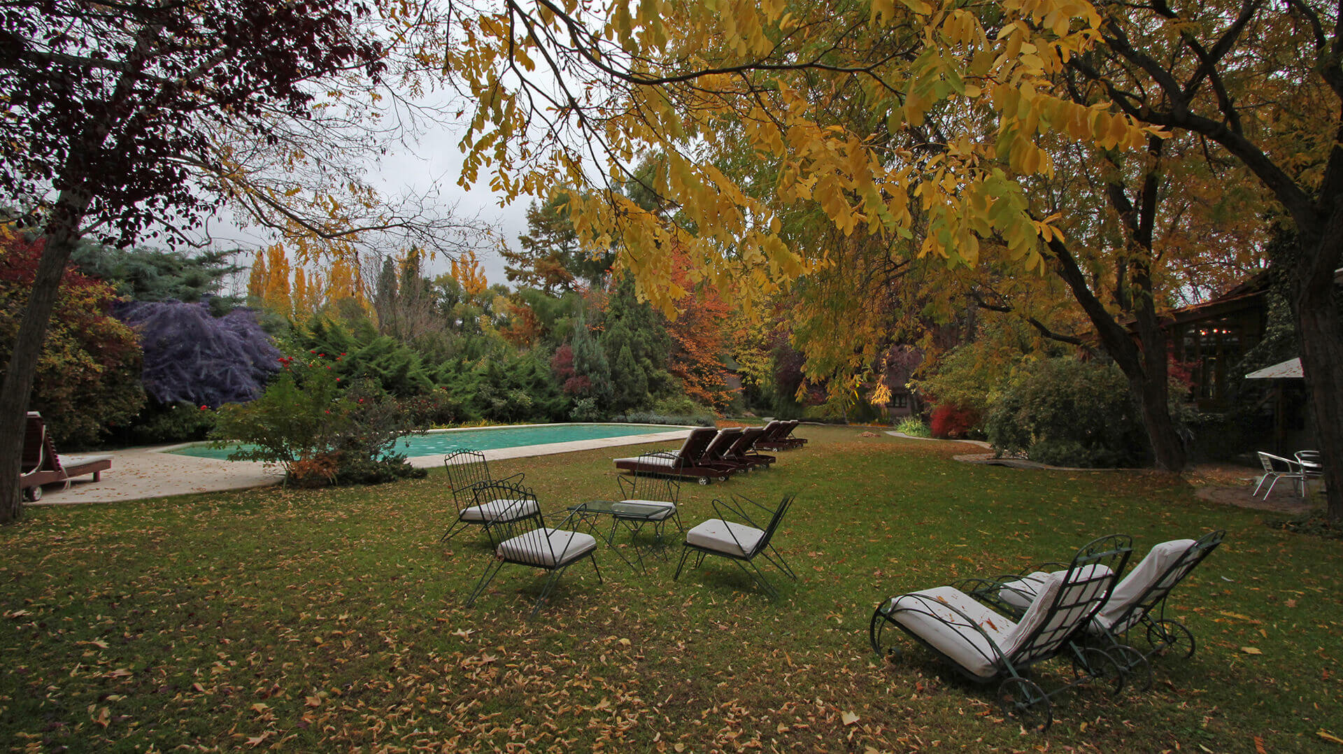O jardim de 7.000 m2 foi projetado e construído pelos proprietários do hotel, os quais continuam esta atividade com dedicação e paixão desde seu início em 1982. O valor que orienta seu trabalho é o logro da harmonia de formas, cores e aromas em todo momento. Suas mais de 300 árvores, cuidadosamente escolhidas e distribuídas para obtenção de um efeito natural, incluem 50 frutíferas de variedades tipicamente cultivadas na região: macieiras, cerejeiras, pereiras, pessegueiros, nogueiras, aveleiras e outras espécies. Os frutos podem ser livremente consumidos pelos hóspedes ao pé da árvore e formam a base das geleias caseiras que são servidas no café da manhã. Numerosos arbustos, plantas menores e algumas coleções trazidas da França enriquecem o lugar. Os recantos íntimos e perfumados pela vegetação que circunda as acomodações, geram uma sensação de bem-estar, assim como a grande piscina com iluminação noturna emoldurada por generosos zimbros, rosas e lavandas. Tudo convida ao repouso, leitura e prazer estético.